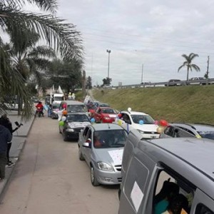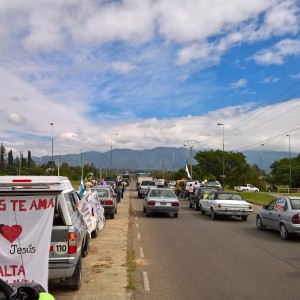 Con más de 300 vehículos, se realizó una procesión con mensajes de fe y esperanza. Sin congestionar el tránsito se desarrolló una fiesta de bocinas en toda la ciudad.