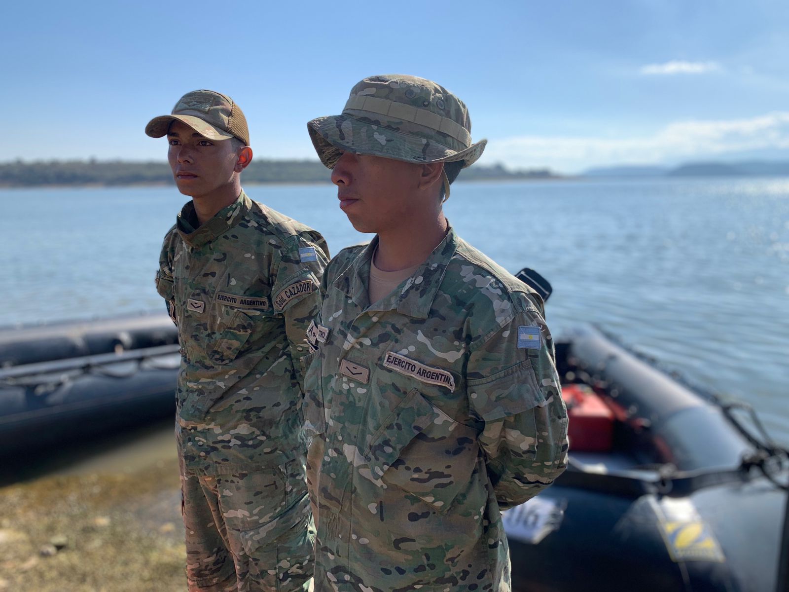 La Subteniente Ramos Medina, una joven oficial recientemente destinada al Batallón, detalló que el objetivo del franqueo del curso de agua con botes de asalto es para mantener a la tropa instruida y estar preparados para cualquier situación.