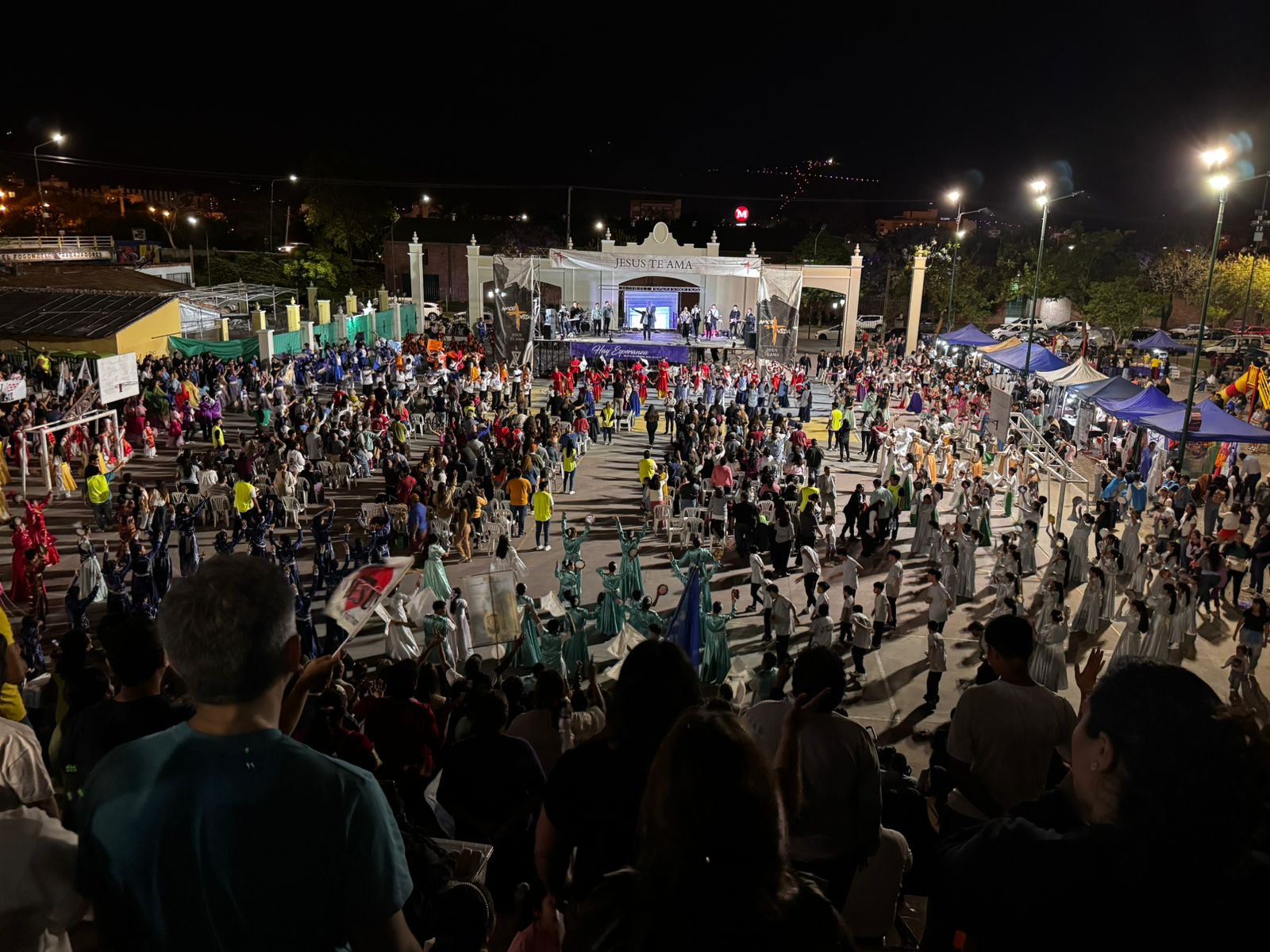 La fiesta incluyó, música, panderos, banderas y estandartes con mensajes referidos a Dios como Shire, Shaddai y Juda.