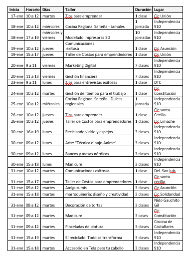 La agenda incluye capacitaciones gratuitas y de corta duración para vecinos mayores de 18 años que deseen sumarse a la oferta de formación en tecnología, gastronomía, producción, habilidades de trabajo, de oficios y competencias para el emprendedor que ofrece la Municipalidad.