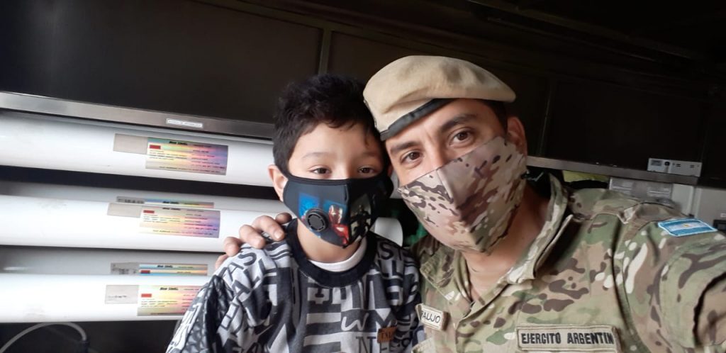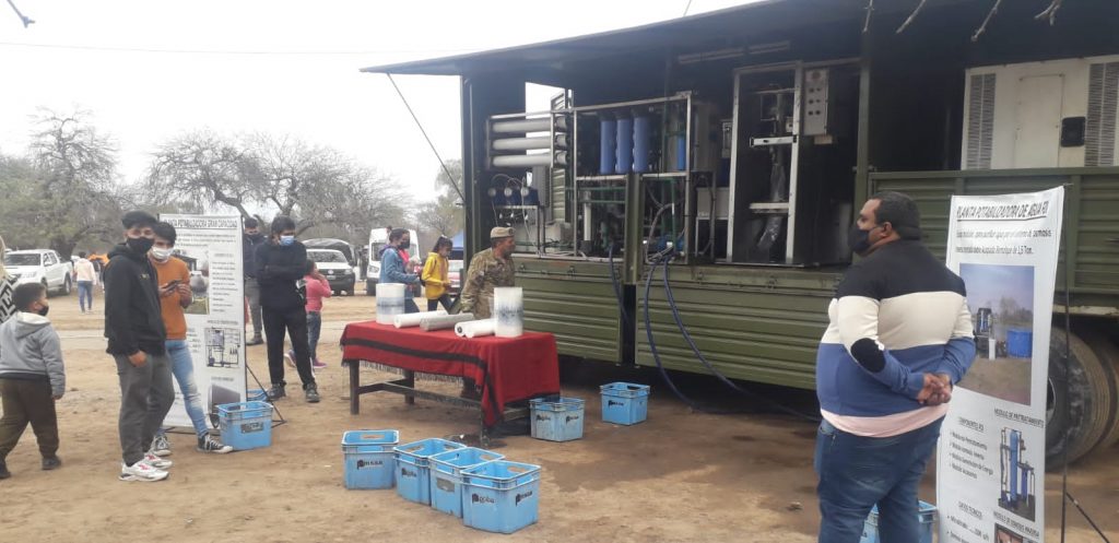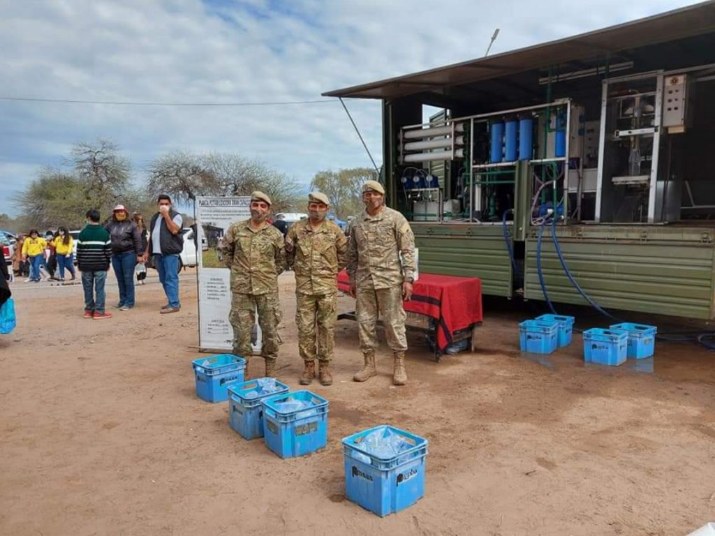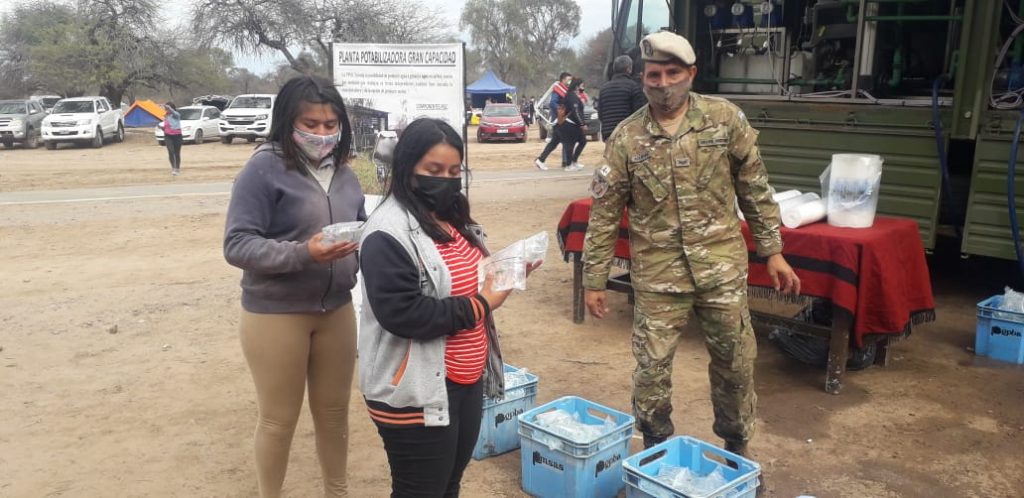 El Ejército Argentino, a través del Comando De La 5ta Brigada De Montaña junto a la Planta Potabilizadora de Agua móvil, aseguró que durante el Acto de Acción de Gracias por la Beatificación de Fray Mamerto, en El Suncho, Departamento La Paz, se hayan entregado miles de bolsas de agua.
