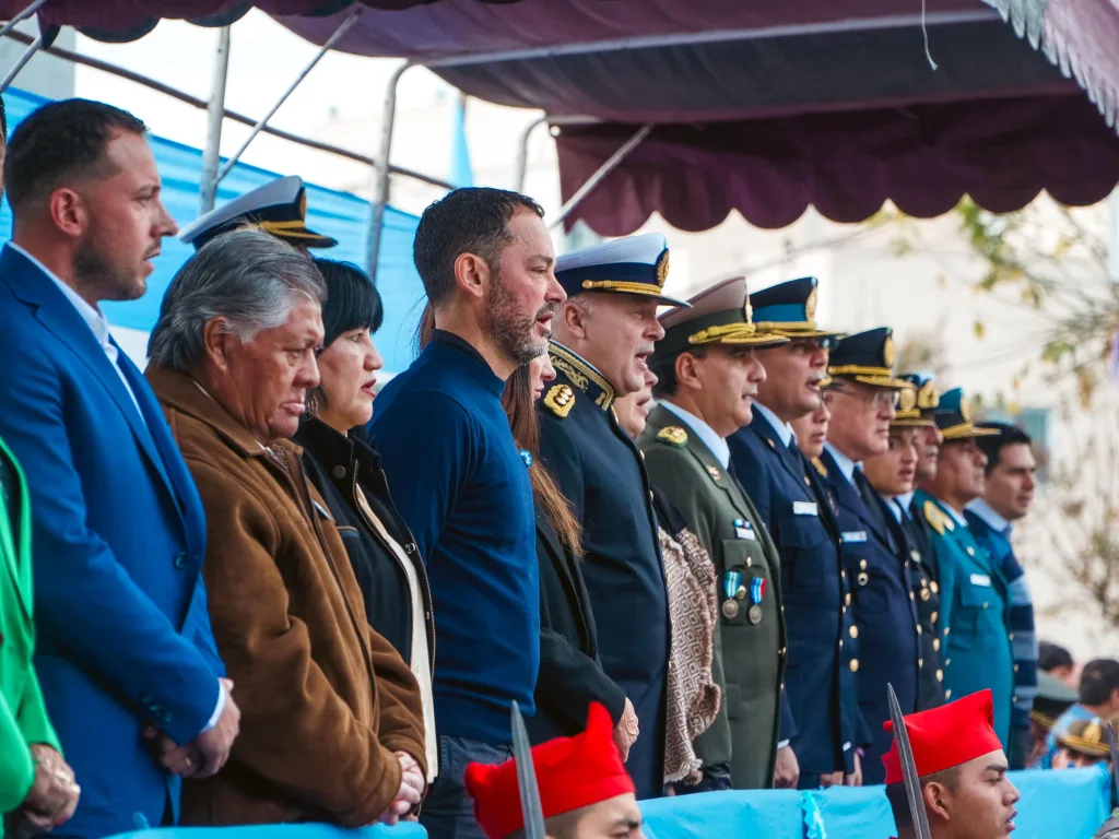 El acto concluyó con el tradicional desfile cívico-militar, en el que participaron representantes de las fuerzas de seguridad, escuelas, clubes, academias, agrupaciones y fortines gauchos.