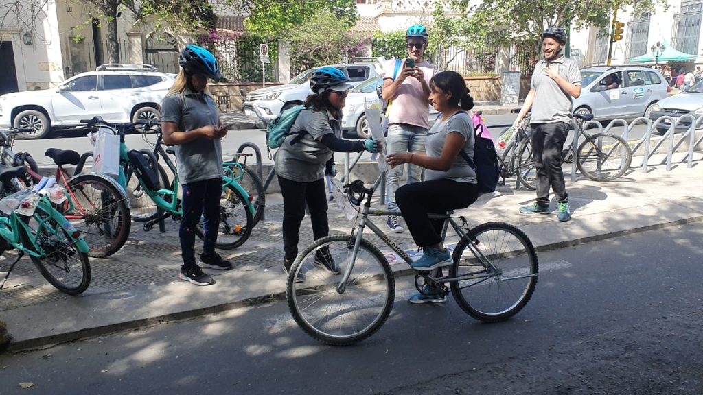 En el marco de la Semana de la Movilidad Sustentable en la ciudad, el programa Salta en Bici de la Municipalidad realizó una intervención especial en distintos puntos de la capital salteña. Un grupo de ciclistas entregó flores para recibir la primavera y para celebrar el uso de la bicicleta como medio de movilidad.