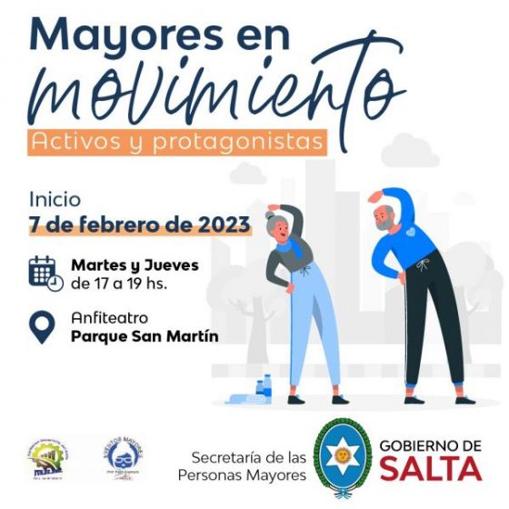 La Secretaría de las Personas Mayores invita a la comunidad a sumarse en este verano al programa “Mayores en Movimiento, Activos y Protagonistas” que comienza el 7 de febrero. Las actividades serán los martes y jueves de 17 a 19 en el Anfiteatro del Parque San Martín.
