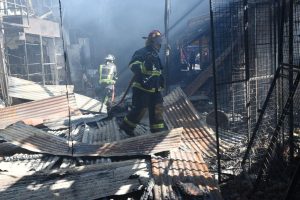 Intenso operativo de sofocamiento de un incendio estructural en el mercado San Miguel