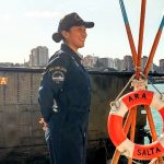 También estuvo embarcada en la corbeta ARA “Guerrico”, y fue su primera experiencia en buques de superficie. “Durante los años que estuve embarcada realizamos distintos ejercicios tendientes a la capacitación del personal. Tuvimos varias navegaciones y patrullas en las 200 millas”, comentó.