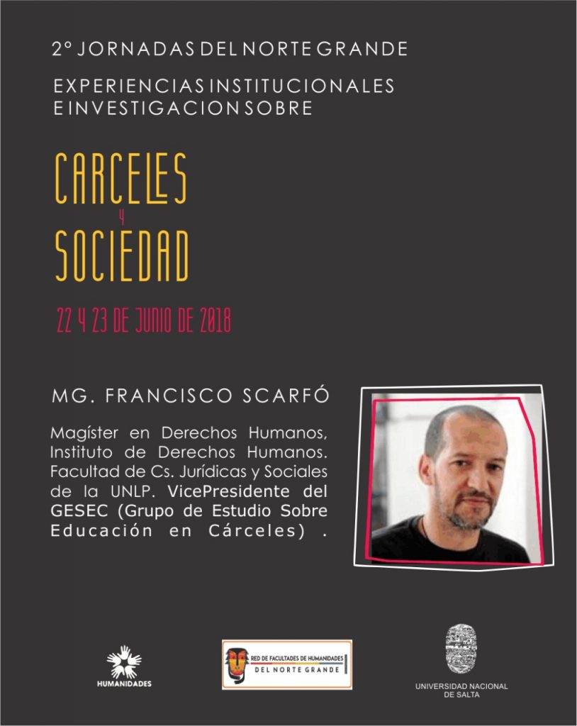 -Francisco Scarfó: Magister en Derechos Humanos, Instituto de Derechos Humanos. Facultad de Ciencias Juridicas y Sociales de la UNLP. Vice-presidente del GESEC (Grupo de Estudio Sobre Educación en Carceles).
